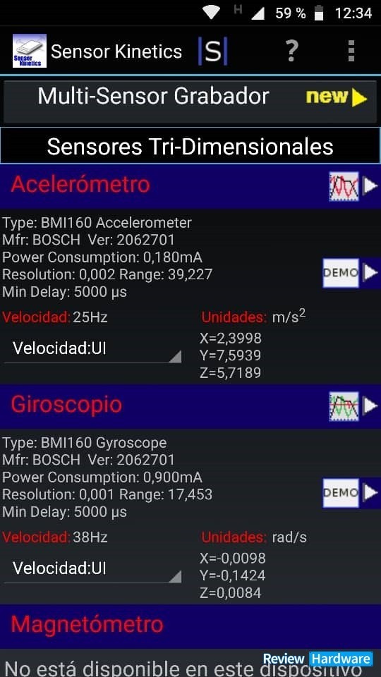 En esta aplicación, también puedes comprobar distintos sensores, desde el la gravedad hasta sensores de luz, con gráficos de los mismos y demostraciones para cada sensor que posea al dispositivo.