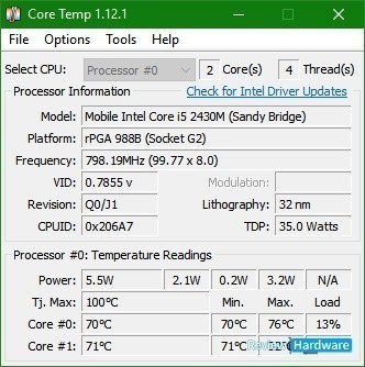 - Core Temp: Esta es una aplicación gratuita para Windows, pero cuidado, intentará instalar programas no deseados. Para evitar eso debes prestar mucha atención al momento de la instalación para desmarcar las opciones innecesarias. Al instalarse simplemente ejecútalo y te mostrará la temperatura de cada núcleo del procesador en la barra de tareas.
