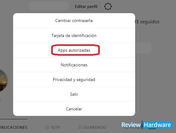 No puedes eliminar aplicaciones autorizadas de ninguna de las aplicaciones de Instagram para Smartphone, por extraño que sea. Tienes que visitas Instagram en tu navegador de escritorio. Ve a tu perfil y haz clic en el botón de configuración en la parte superior junto al botón Editar perfil.