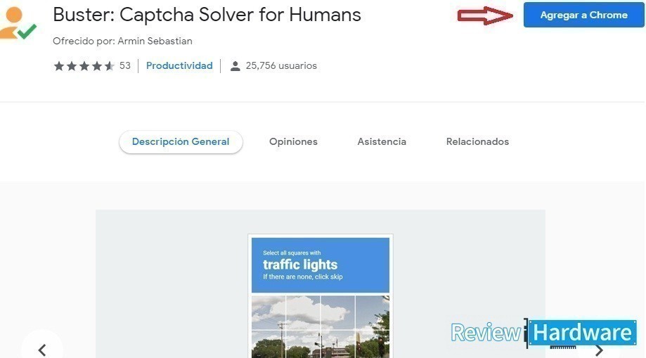 También puedes descargar extensiones de navegador que resuelven los desafíos por ti. Uno de ellos es Buster, que hace un buen trabajo al evitar los desafíos de audio, disponible con Chrome y Firefox. Tan pronto como te encuentras con un desafío visual, el icono de la extensión se activa.