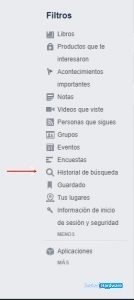 Luego ubicas el menú en el lado izquierdo selecciona ver más que se encuentra por debajo de comentarios. Una vez hecho esto, selecciona historial de búsquedas que se encuentra por debajo de encuestas. Allí aparecerán todas tus visitas. Además, en el lado derecho se mostrara cuanto tiempo tiene publicada cada post. Esto te permitirá ubicar rápidamente contenidos pasados.